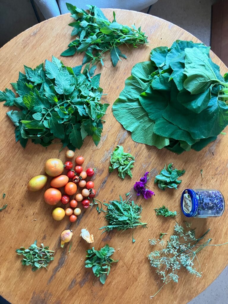 By the end of the growing season we had several harvests of pumpkins, tomatoes, potatoes and rucola (that planted and maintained itself). In fact, the first pumpkin of the season was presented to the gardner for being an ally in this experiment. I also cooked with pumpkin and tomato leaves and learnt a lot of new recipes using mallow flowers and leaves. We closed the season with several jars filled with dried herbs, packets full of seeds and a brain full of ideas for the next year.